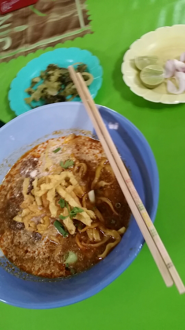 チェンマイ名物のカオソイ(カレーラーメン)の名店です。