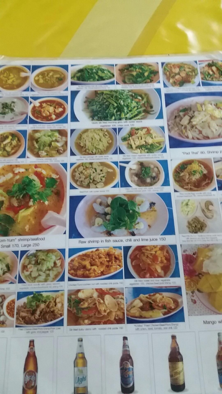 タイ料理を中心に西洋料理もあり、みなリーズナブルな値段で、味もそこそこ。