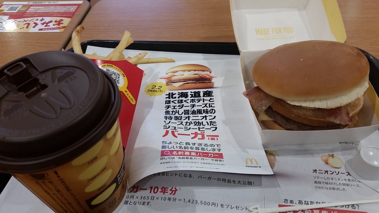 肝心のバーガーですが、好きな材料ばかりだったのですが、食べてみるとちょっと思っていた味と違っていた。ソースが少し甘いのがちょっとどうか??と思うが、まあまあって感じですね。やはり、月見バーガーを越えるものはないです。- 旅行時期
