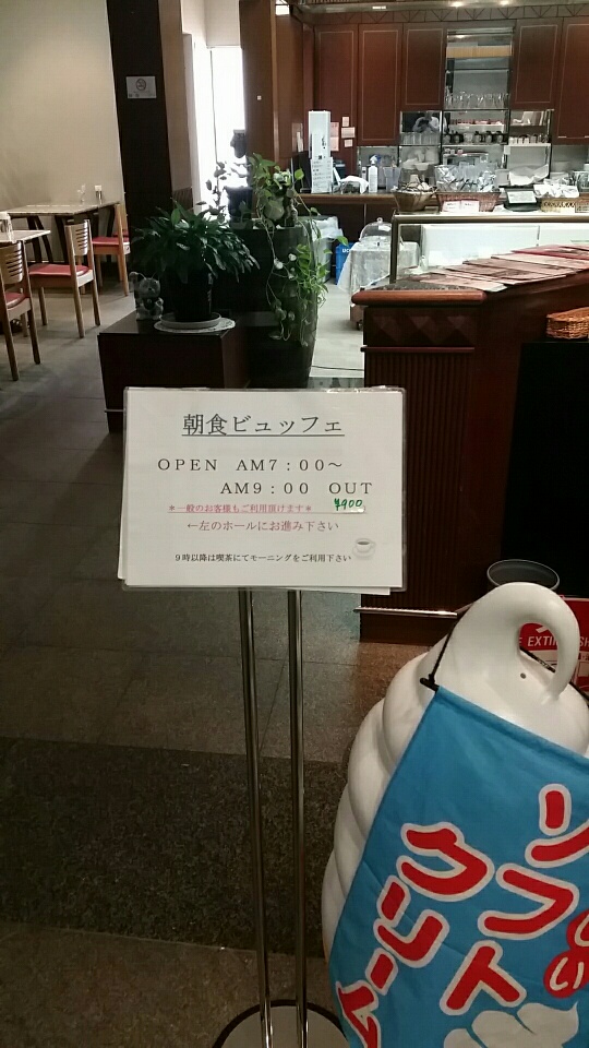 なお、宿泊プランのセットの朝食は、1Fフロント近くの喫茶・レストランの「ライン」で朝7時~9時で朝食バイキング(通常900円)がついており、洋食・和食・ドリンク類も一通りあって、なかなか良かったです。