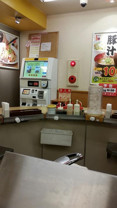 最初にチケット発券機で、食券を購入しますが、期間限定のメニューの牛飯+カレーうどんのセットが1コインにつられて購入。