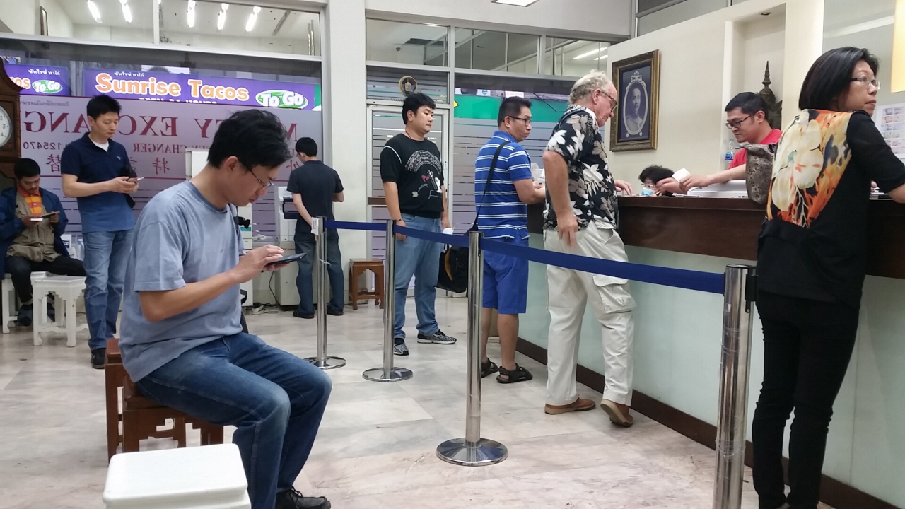 両替の際、パスポートが必要です。コピー機のところに人が立ってるんで、パスポートを渡すと、コピーして一緒に返してくれます。あとはカウンターのところで、コピーの方に滞在ホテル名を手書きすれば、あとは両替に応じてくれます。
