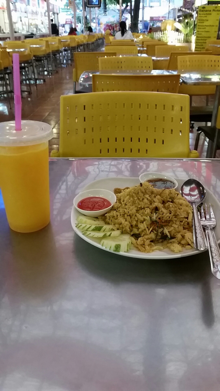 10店舗ほど店が並んでいるんで、好きなところからチケットと交換で料理を注文する形。料理によるが40B~60Bくらい。その他飲み物を注文しても100Bは越えることは少ない。