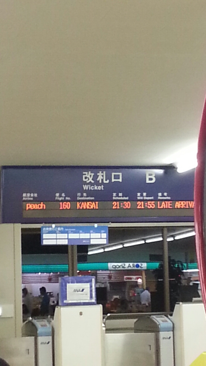 結局1時間程度遅れたせいで、関空には夜11時に到着。関空でもLCCの発着ロビーは駅からかなり離れているため、10分程度バス移動。