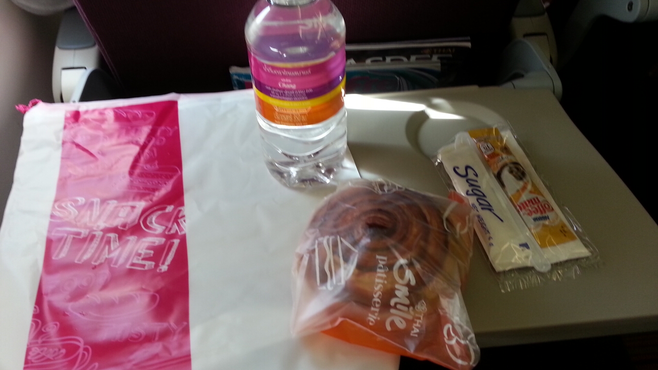 機材のエアバスは真新しく、機内サービスではかわいいビニール袋に入った軽食セットも出され、とくに問題はなかった。さすがタイ航空のグループ会社なので安心です。