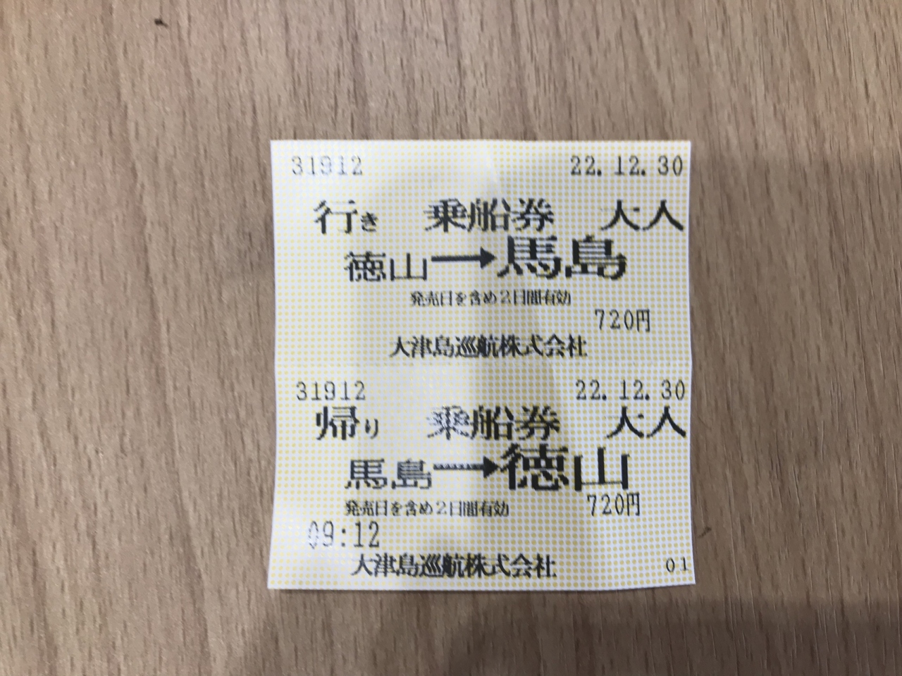 乗船料は徳山港から島の各港まで、片道720円の一律料金。