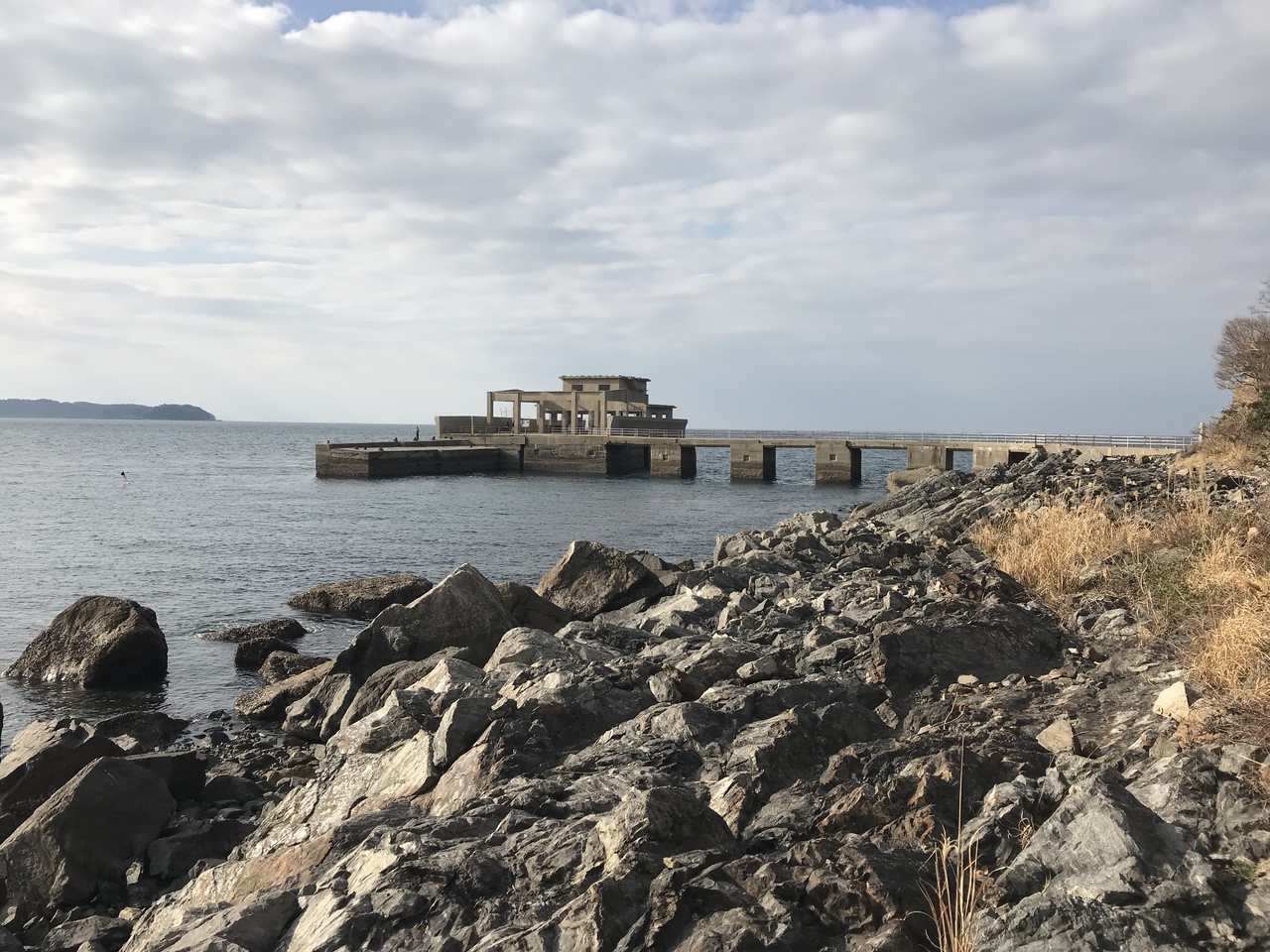 大津島には、戦争遺産の人間魚雷「回天」関連施設が残り、回天関連施設の中でも象徴的な訓練基地跡。全国で唯一残っている回天の訓練基地跡である。