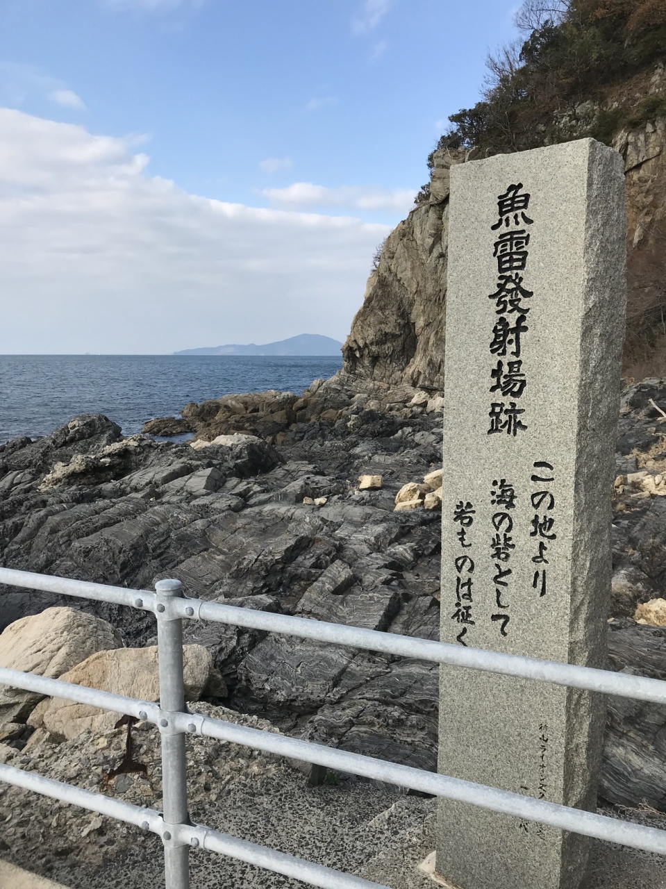 回天」の島と呼ばれ、戦況の悪化した第二時世界大戦末期、島の周辺では人間魚雷「回天」の発射訓練が行われ、訓練に使用された基地跡が戦争遺産として残っている。