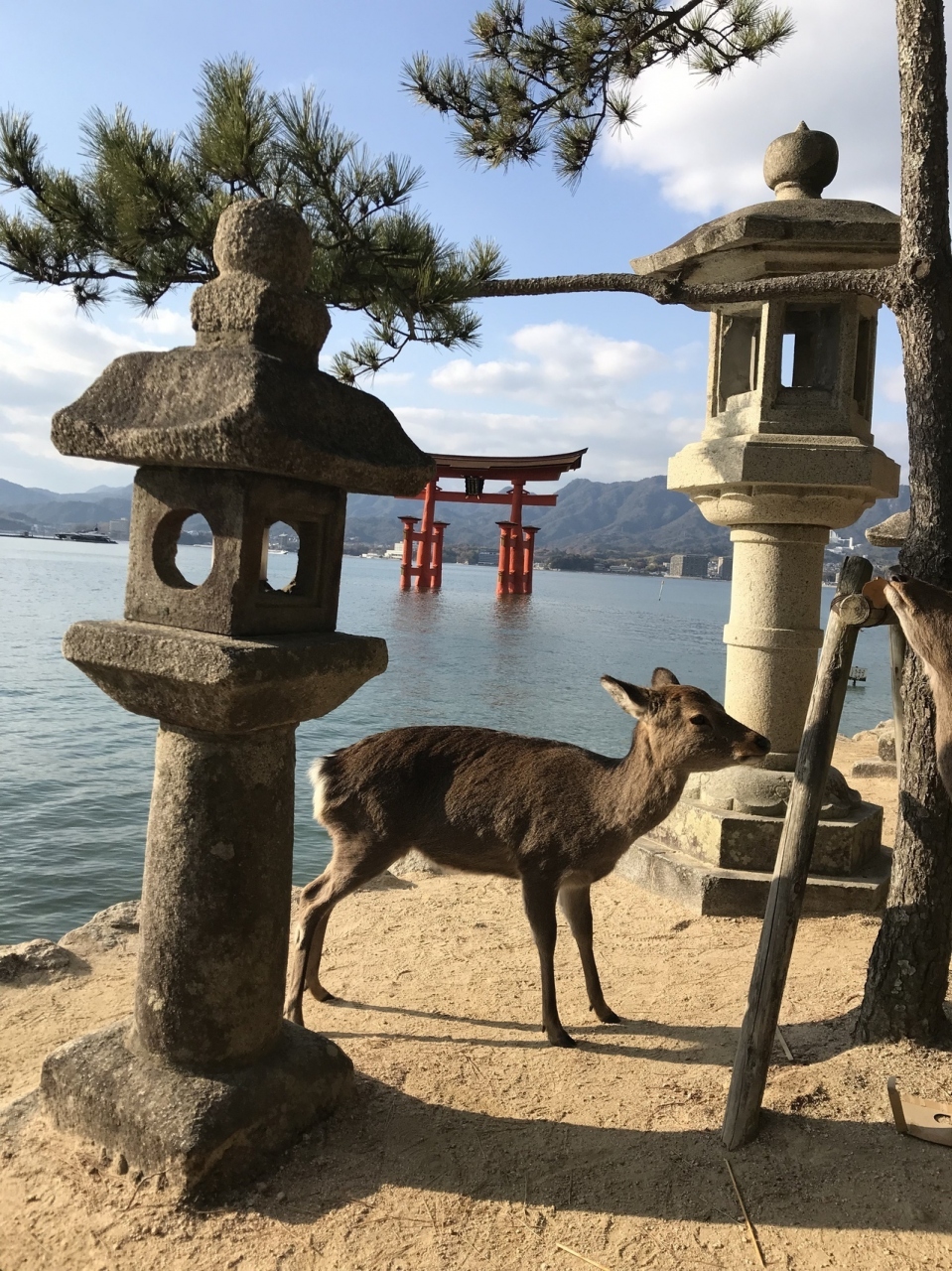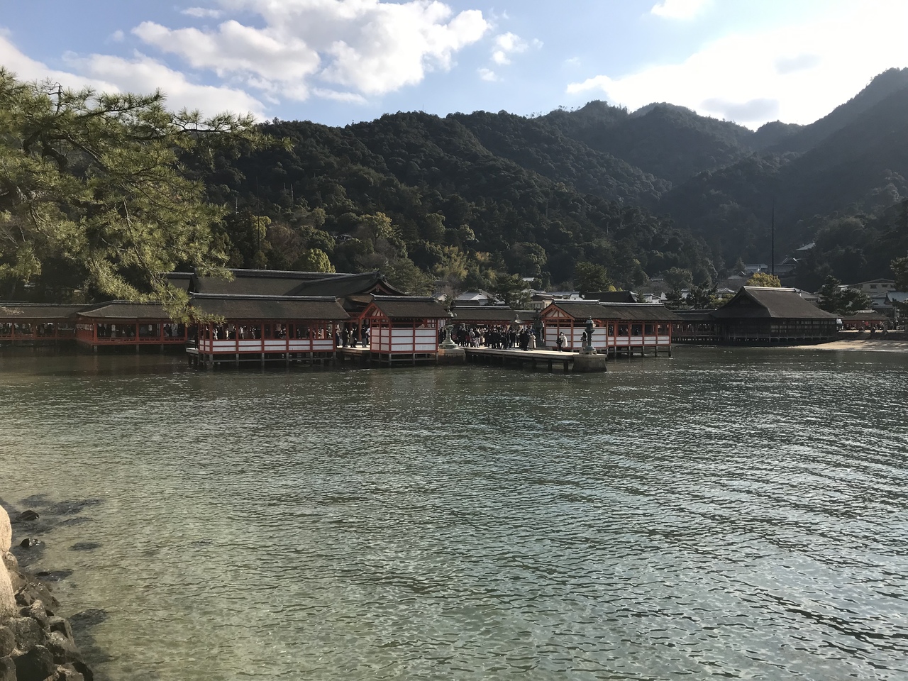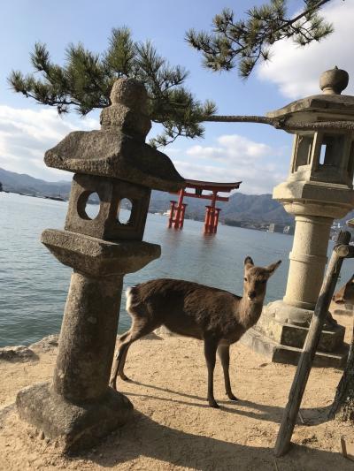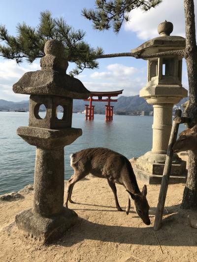 日本三景のひとつ厳島神社のある宮島は人人人。宮島フェリーターミナルから厳島神社の道のりは、どの道を歩けども人だかり。たまに鹿との出会いがある。人は多いが眺めは美しい。