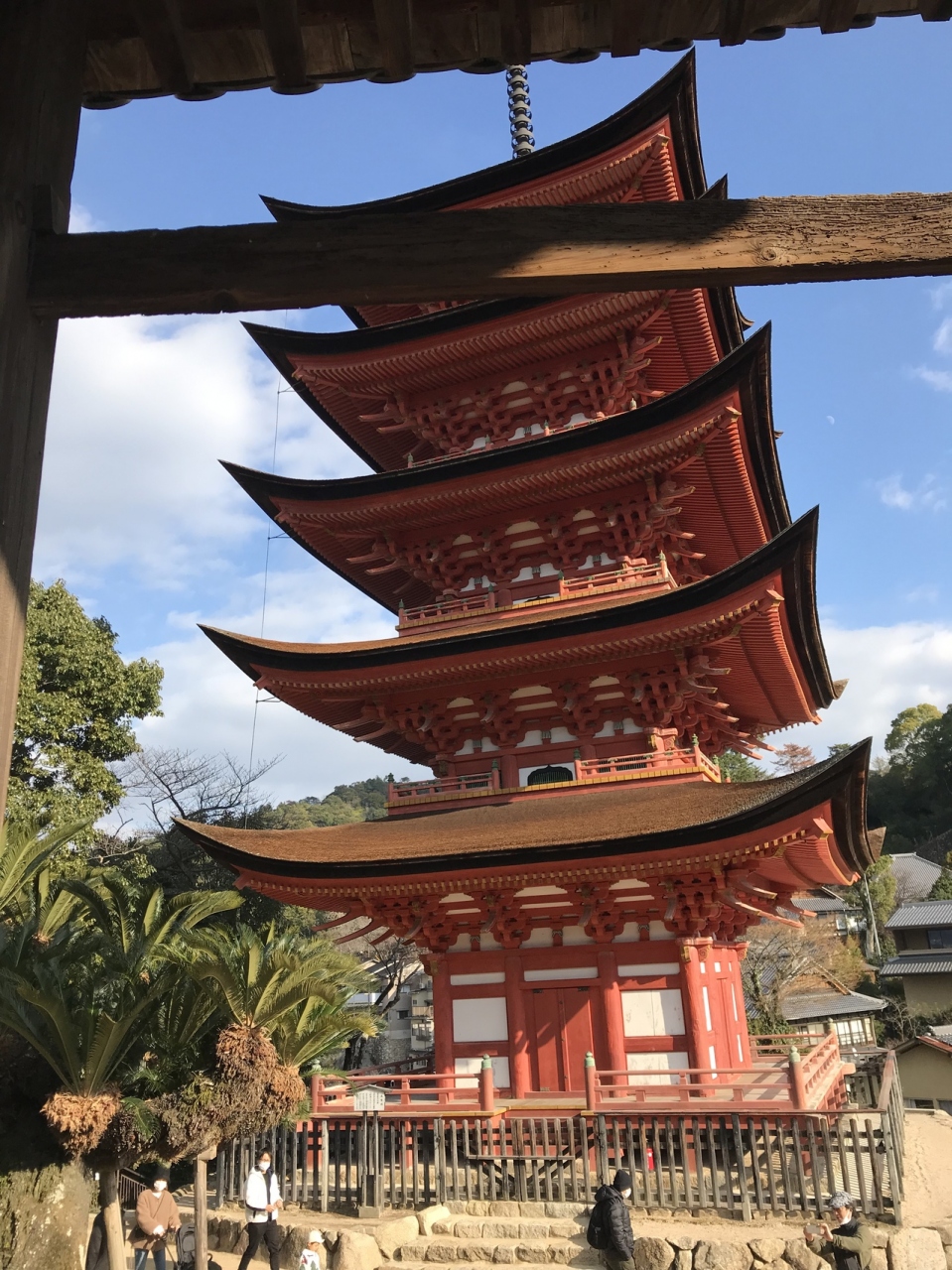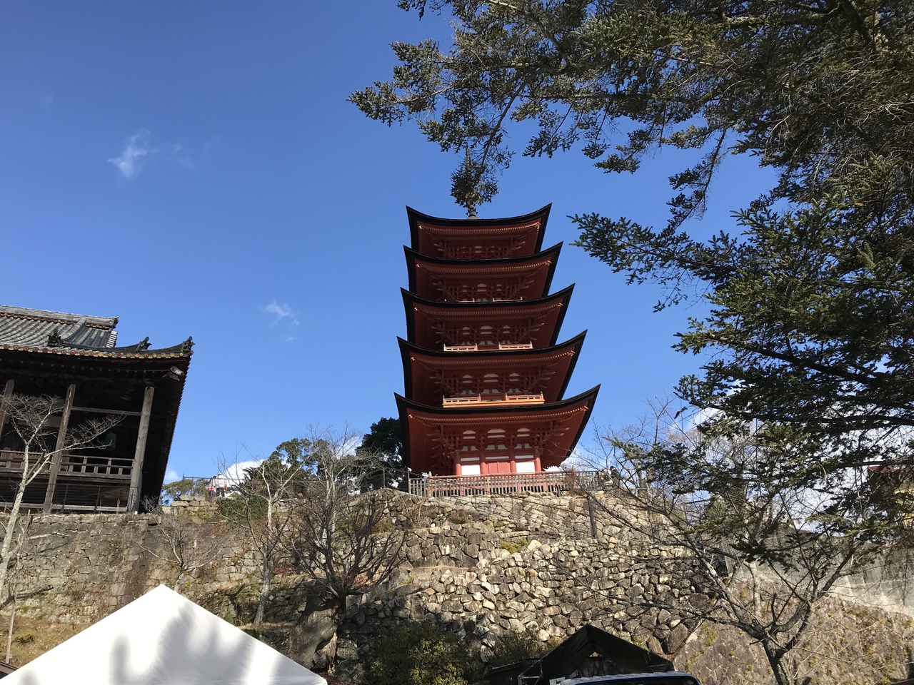 五重塔(広島県宮島):厳島神社の見える高台に建つ
