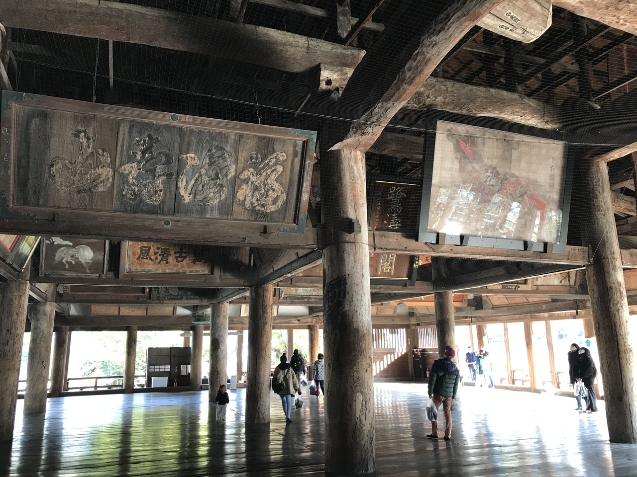 平清盛により建てられた国宝で世界遺産の建築物は、舞台を歩くと、平安時代末期の歴史的な重みや技術力を感じる。