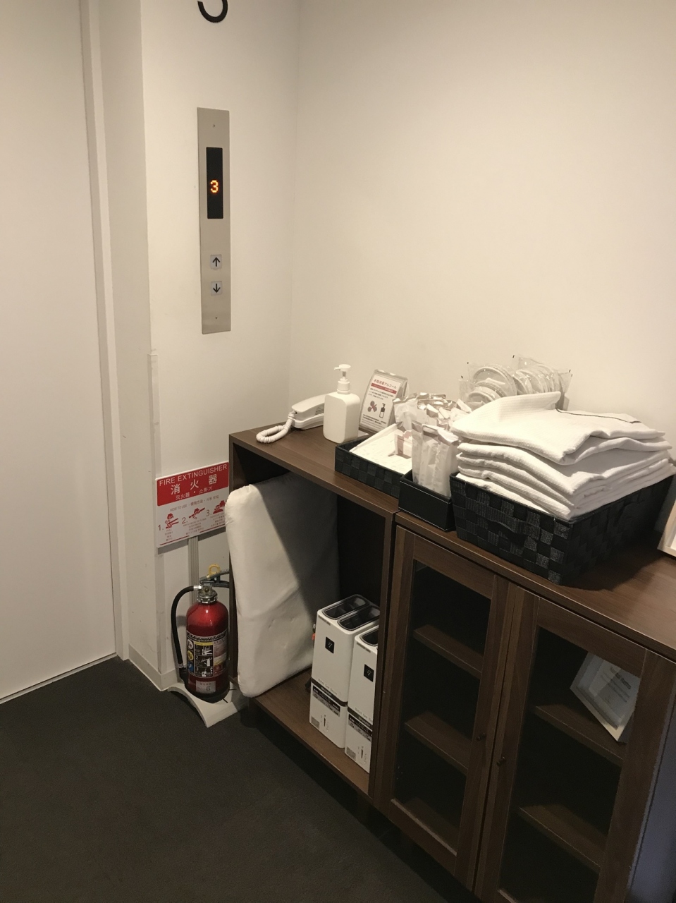 湯沸かしポットは、エレベーター前ホールに数個しか置かれておらず、数に限りがある。早い者勝ち。