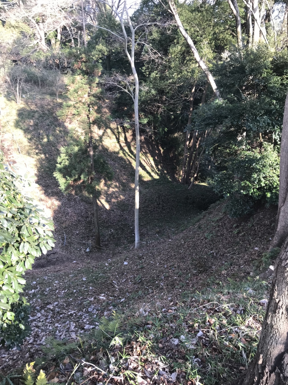 本丸跡を囲むよう大土塁と、本丸跡と北曲輪跡の間に残る大空堀が見どころ。