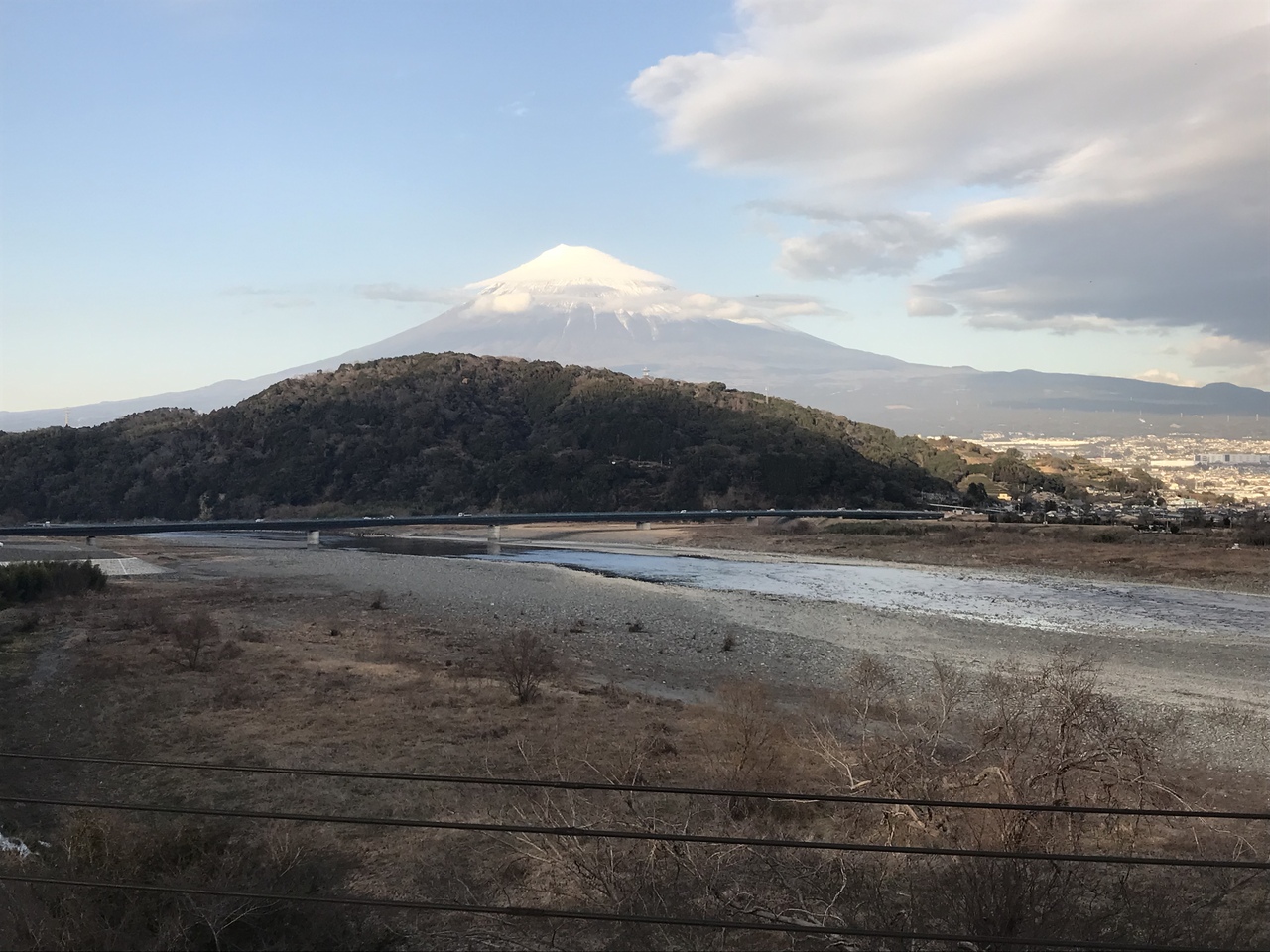 富士山のビュースポット。遮る物がない富士川越しの富士山の眺めには見惚れる。