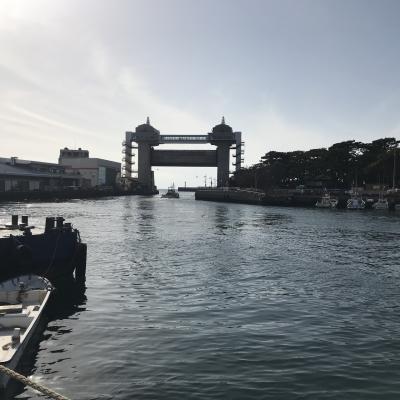沼津港の船舶出入口に、東海地震の津波対策として2004年(平成16年)に完成した水門。