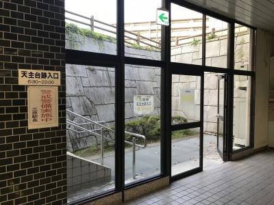 天主台跡へは三原駅コンコース内からしか入ることができず、見学できる時間は通路のドアの開いている6:00~22:00の間。入場券は不要。