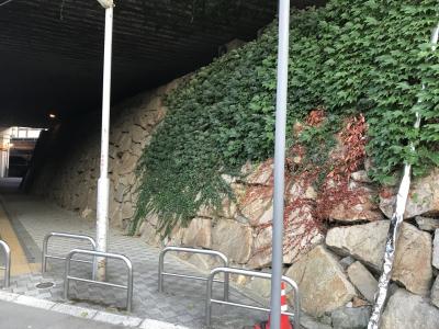 駅高架下には石垣が残り、新幹線ホーム横に天守台跡が隣接。駅と城跡は直結し改札口を出ると三原城跡。