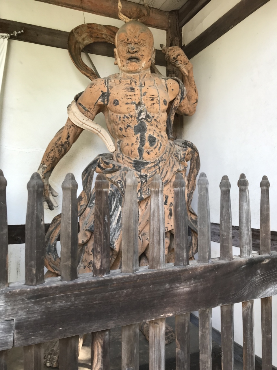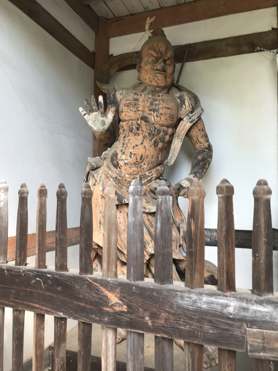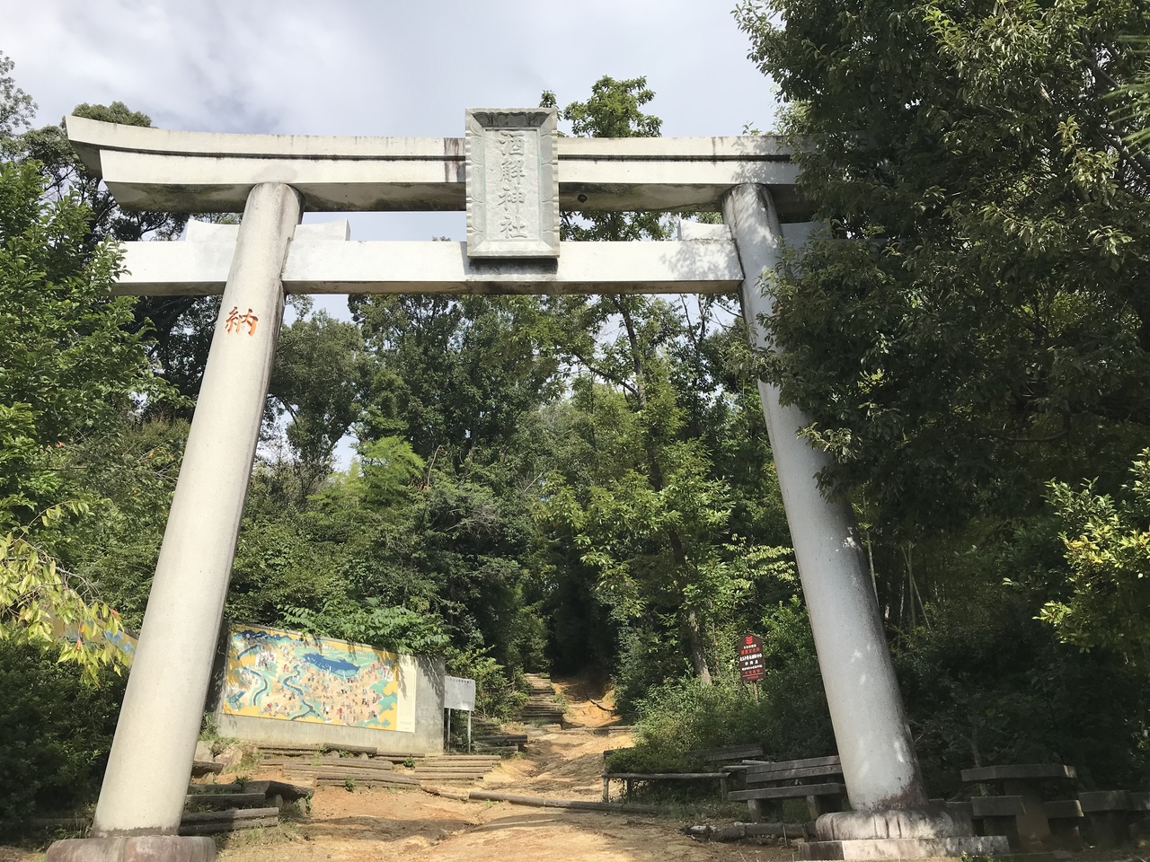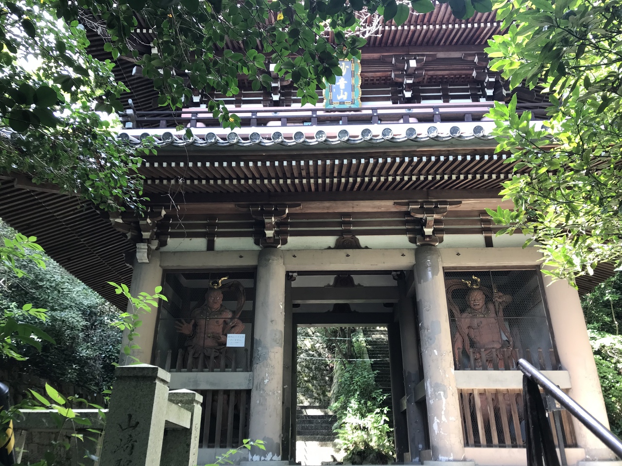 天王山ハイキングコース途上にあり、山門を潜らないと天王山頂上へ行けない。天王山入山門のように建っている。