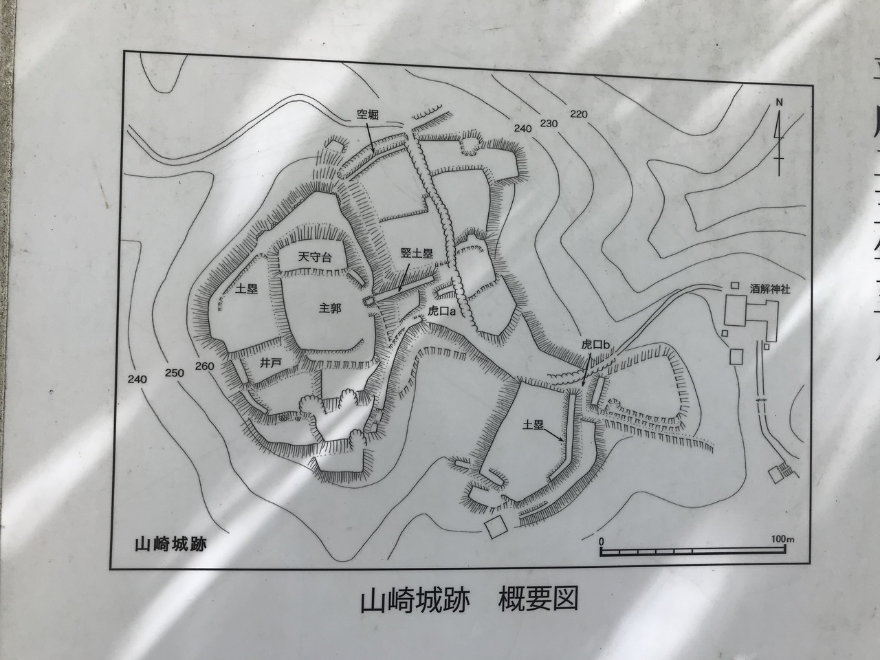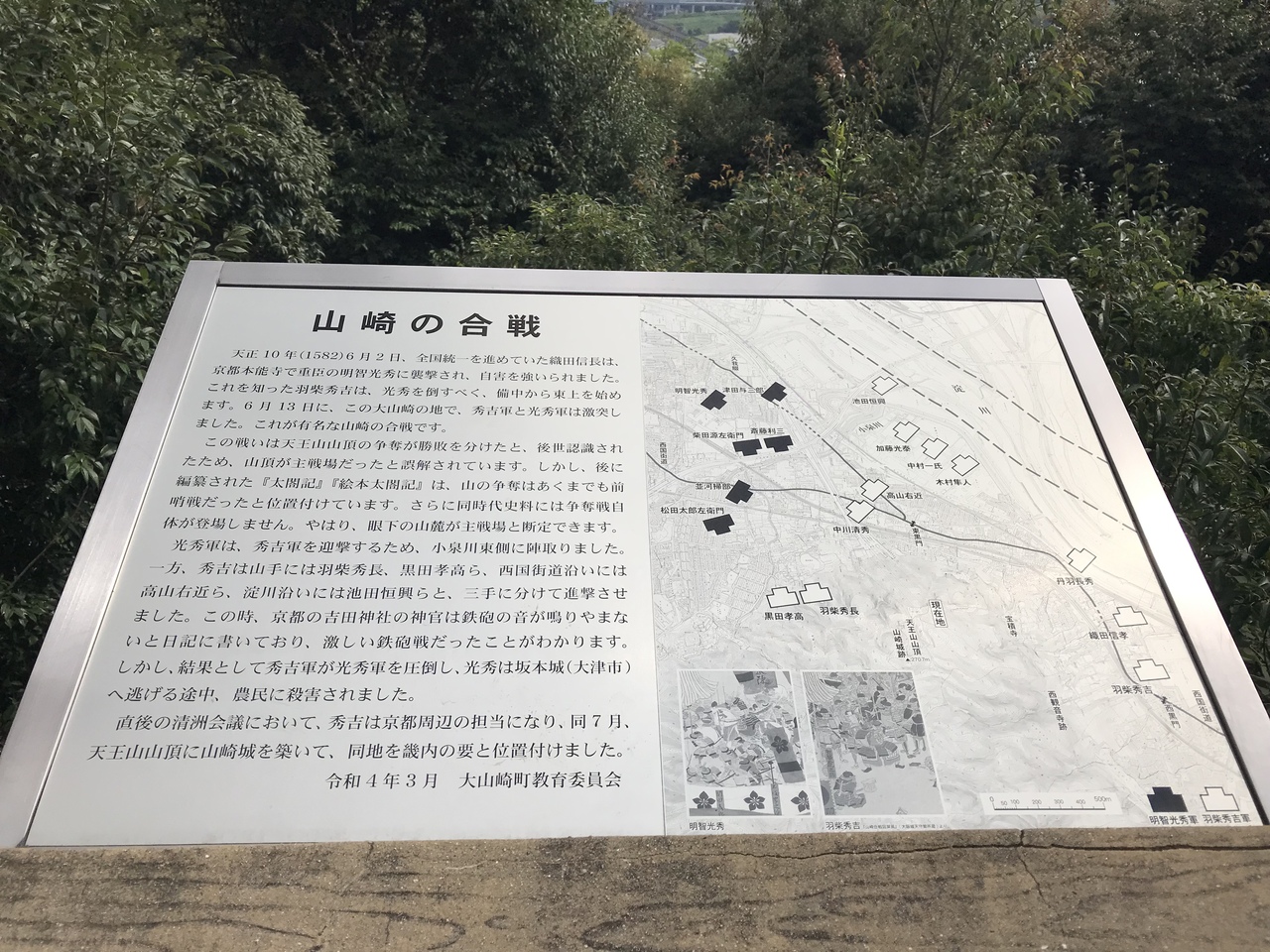天王山山頂(270.4m)は山崎城の主郭跡となる。