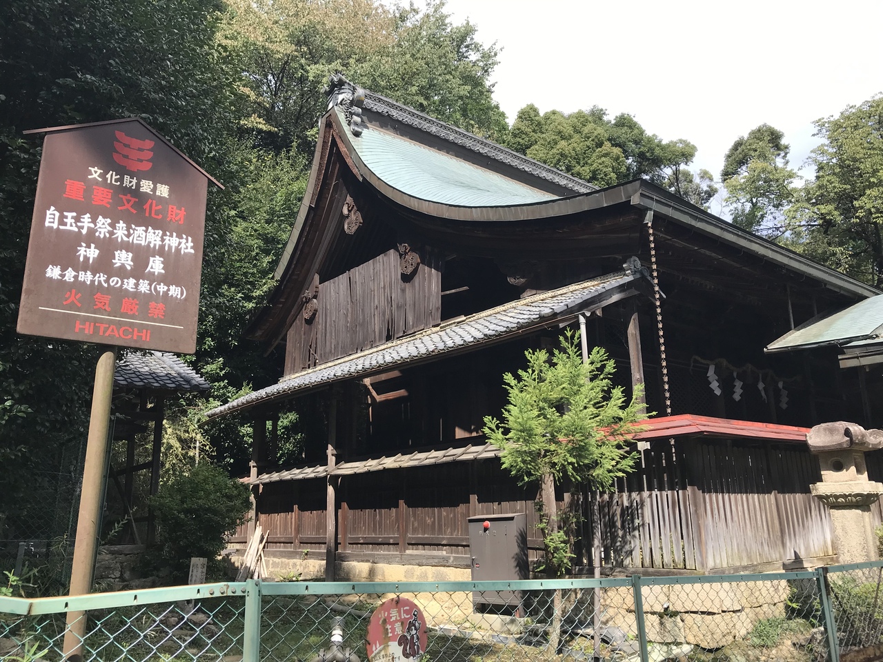 酒解神社の神輿庫は重要文化財で、板倉形式という珍しい形式で建築され鎌倉時代前期の建物。