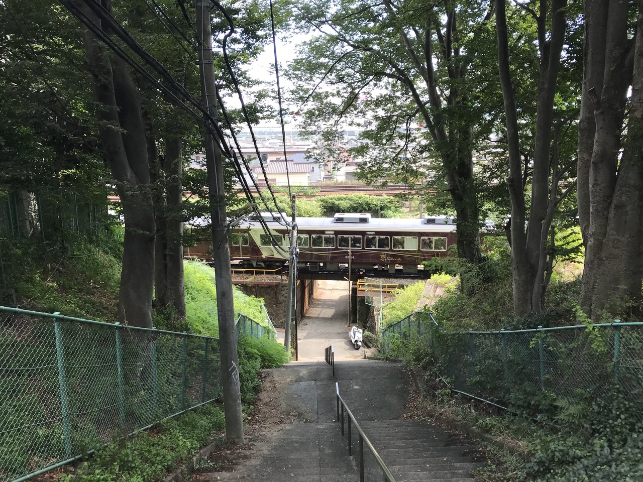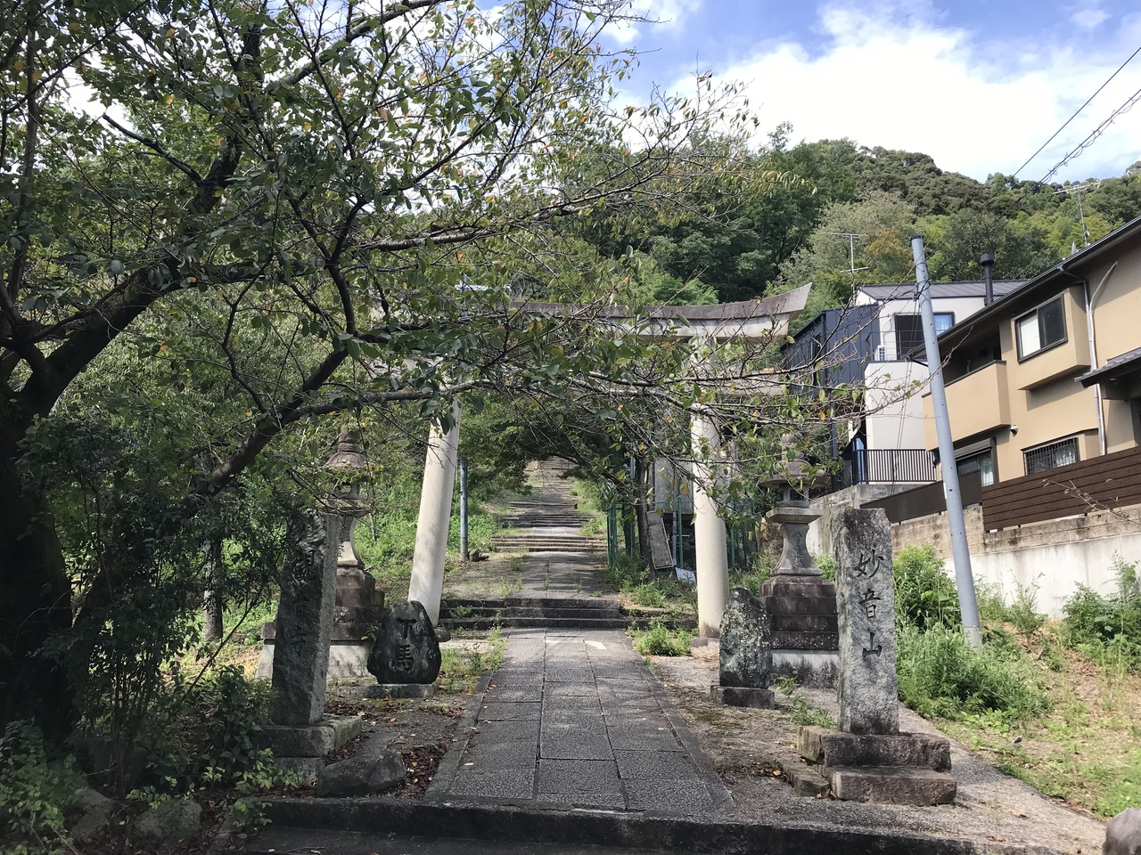 鳥居を進みJRと阪急の高架を潜り長い階段を登ると本堂に着く。階段からの鉄道風景が記憶に残る寺。