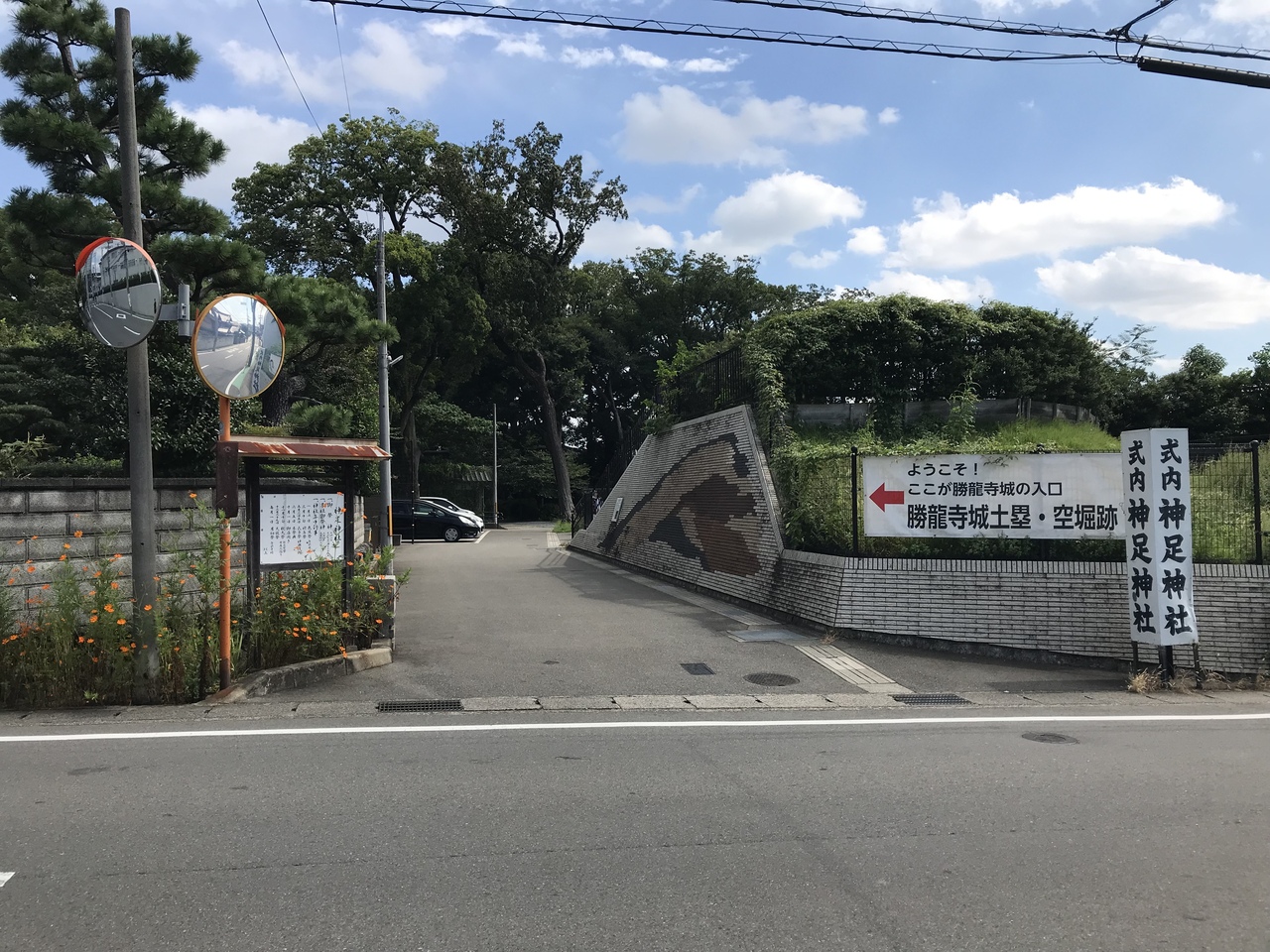 神足神社(京都府長岡京):勝龍寺城の土塁・堀跡が残る、足の神