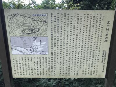 中世・戦国時代の山城で、黒田氏の居城と伝わっている。 標高約40mの小さな山が黒田城跡。本丸跡にあたる山上に現在は稲荷神社が建っている。全体の城郭は不明で、帯曲輪・竪掘・掘底道と思える地形が見受けられる。- 旅行時期