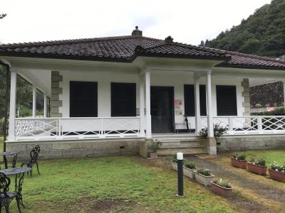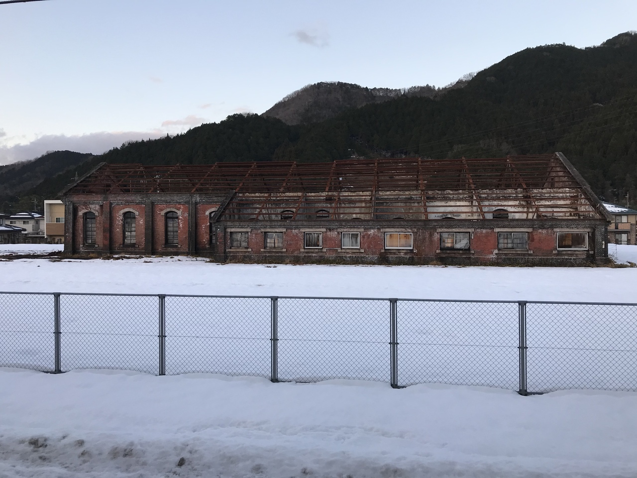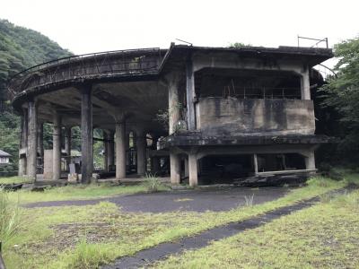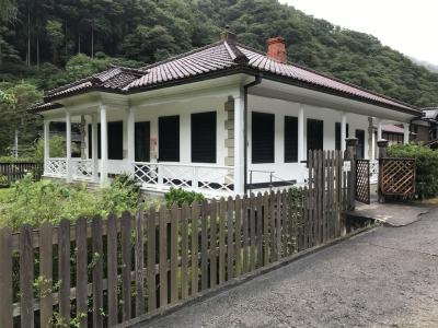 神子畑選鉱場跡のインクラインの前にある西洋館。周りの風景とは異質な光景。