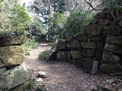 広い本丸には、虎口石垣・土塁が確認でる。満足する遺構、城跡を確認できたことから、ここで引き返し同じ道を下ろうと考えたが、曲輪群がもっと確認できるはずだと思い観音正寺方面へ行く。