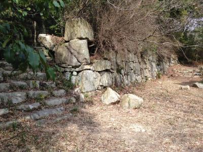 桑実寺からの登りは、幅の異なる石段のほぼ直登。寺から本丸までもほぼ急な登りが続く。イッキに登るとかなりハード。