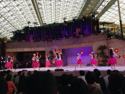 蒼井ゆう主演の映画のシーンを思い出し、イメージしハワイアンズに着きました。晩秋に訪問したが館内は南国の様に暑く、ショーの舞台はプールの側にあります。ハワイアンズショーは本番のハワイで見たのと変わりなく日本人のハワイアンダンスとしてすばらしかった。