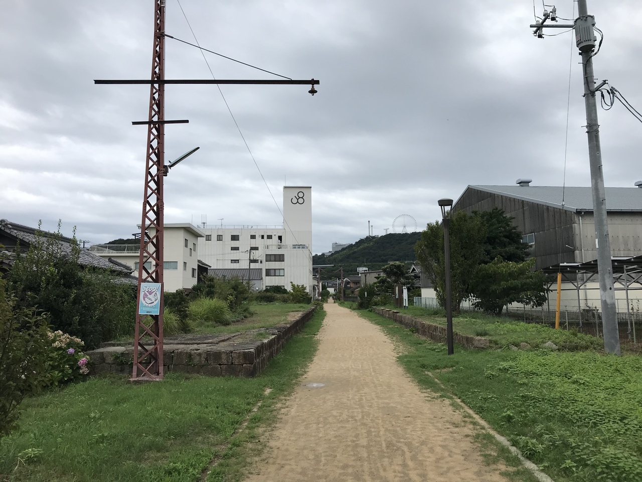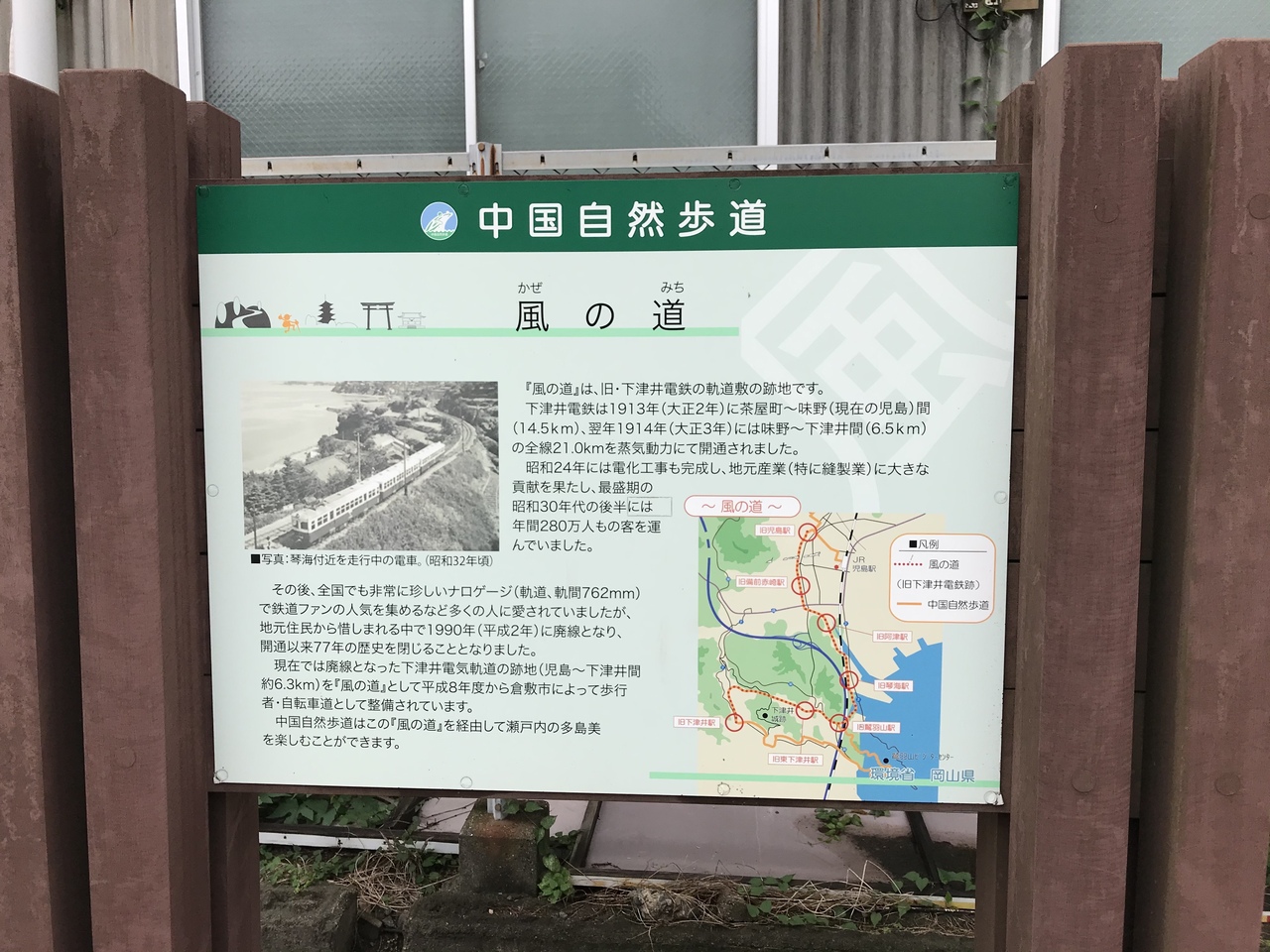 廃止された下津井電鉄の児島駅~下津井駅の区間を歩行者・自転車専用道に整備された道。