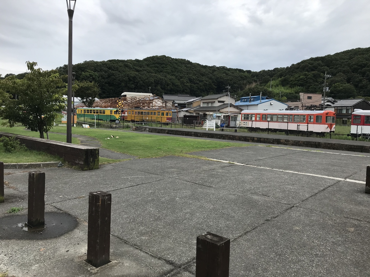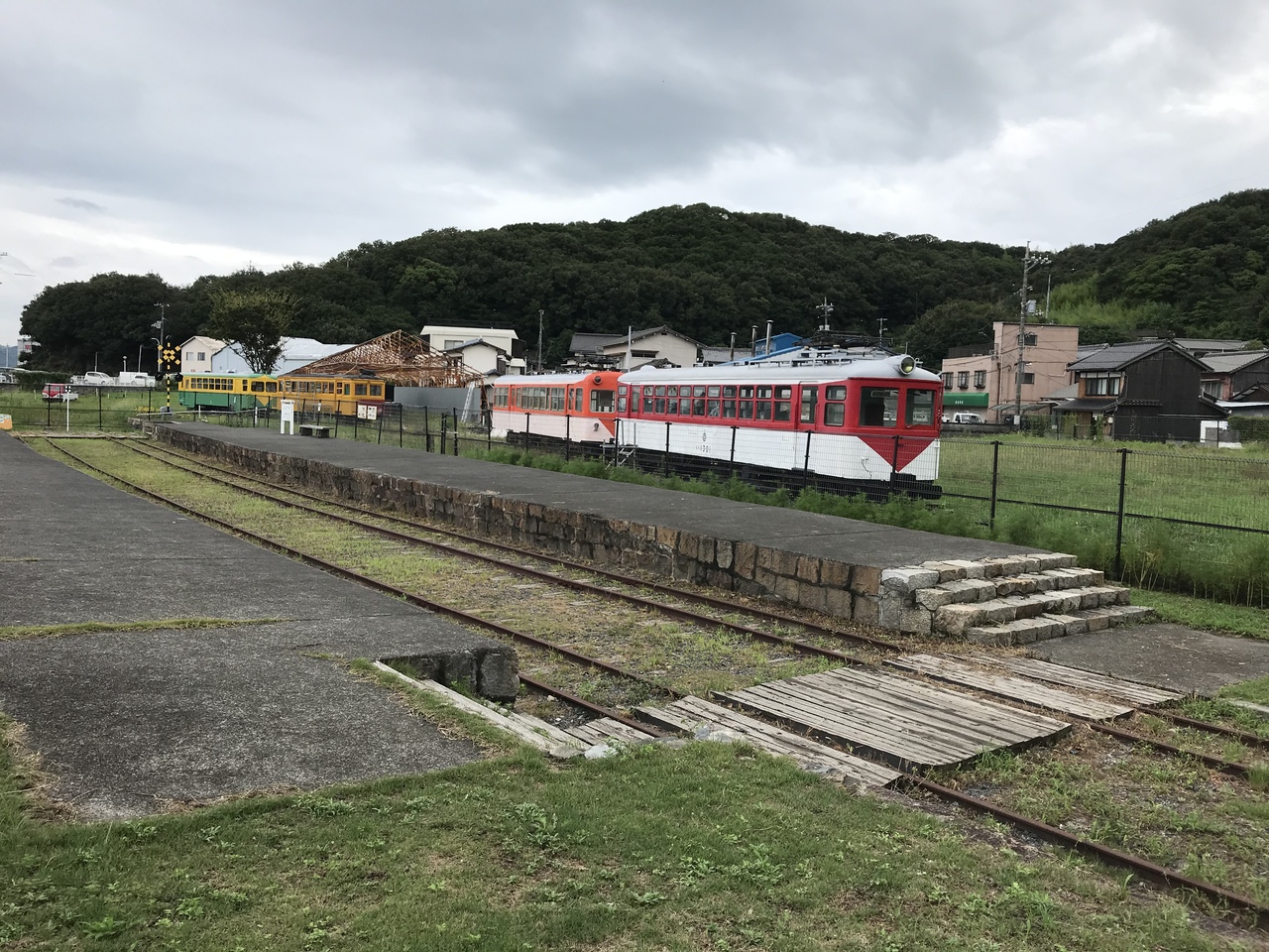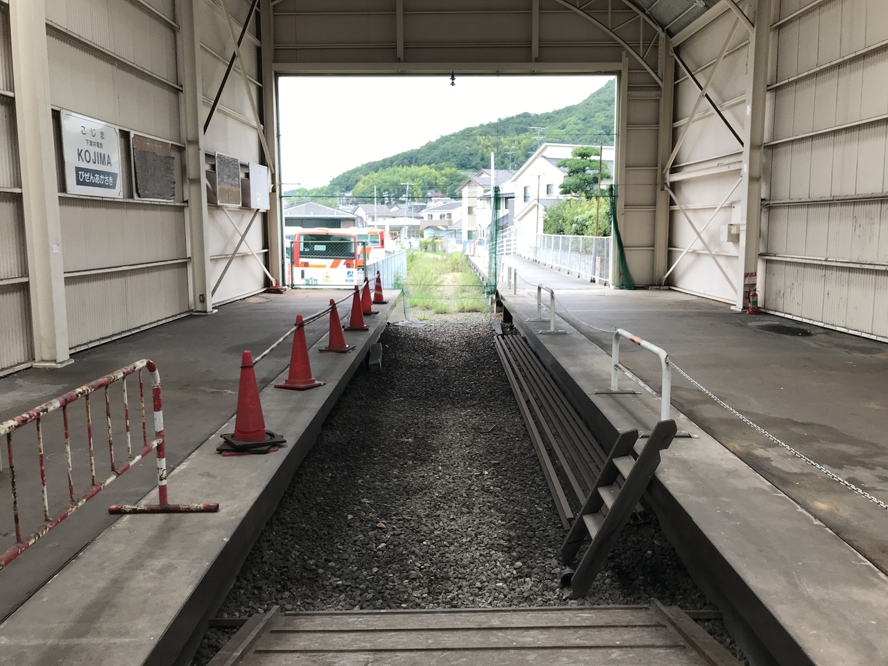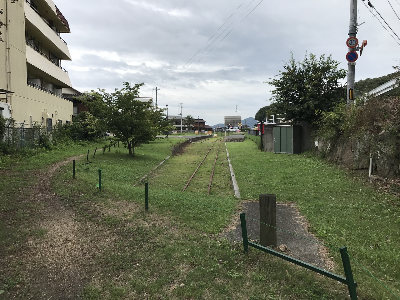 旧児島駅には駅舎、旧下津井駅には動体保存された車両、他に駅跡・架線跡等が残り、鉄道の趣きが残る道。