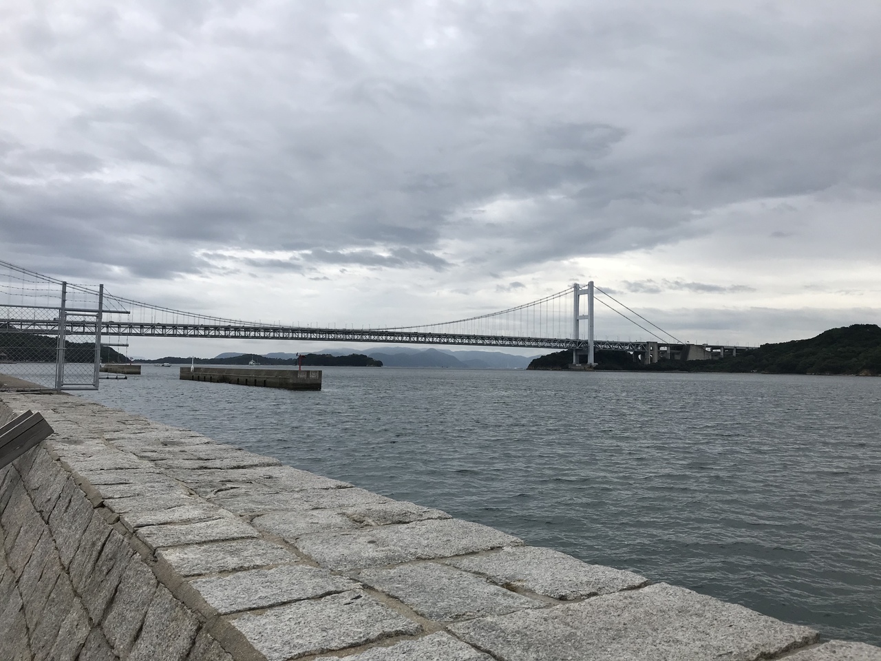 潮の風を感じながら静寂な古い町並みの残る旧街道を歩き、その先には瀬戸大橋を下から眺める光景がある。- 旅行時期