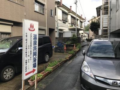 駅から迷わなければ徒歩5分もかからないが、住宅街の中に溶け込んでいるので分かりづらい場所にある。温泉付近の立看板が大きな目印となった。