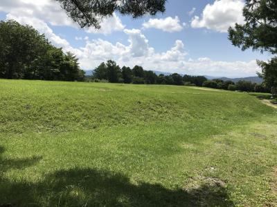 麓の居館と、標高345mの「白旗が峰」に築かれた城郭からなる梯郭式の平山城。