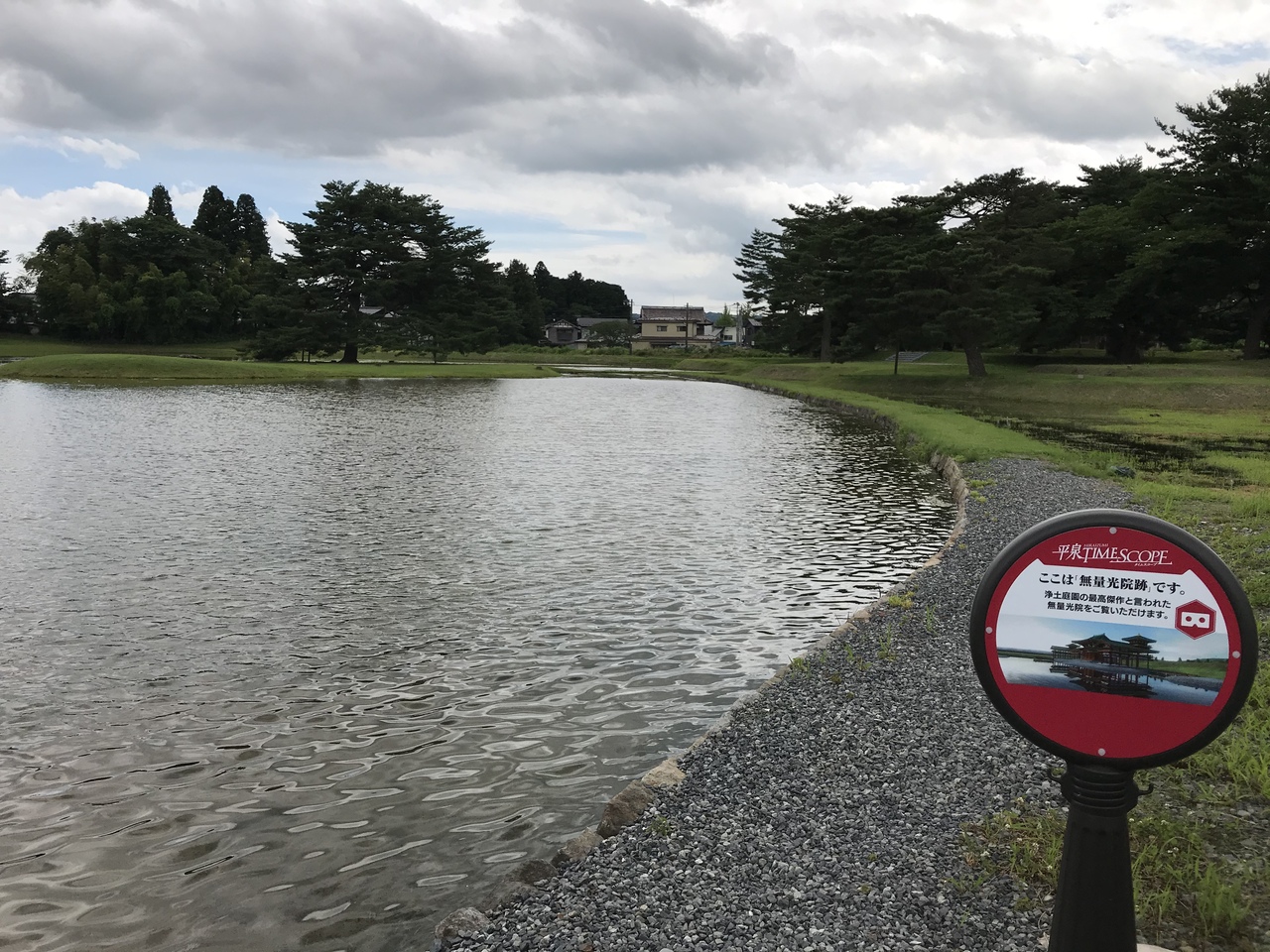 最上川沿いにある長閑な平泉の風景で観る浄土庭園の池や遺跡は、心に安らぎを与え落ち着かせてくれる素晴らしい情景だった。- 旅行時期