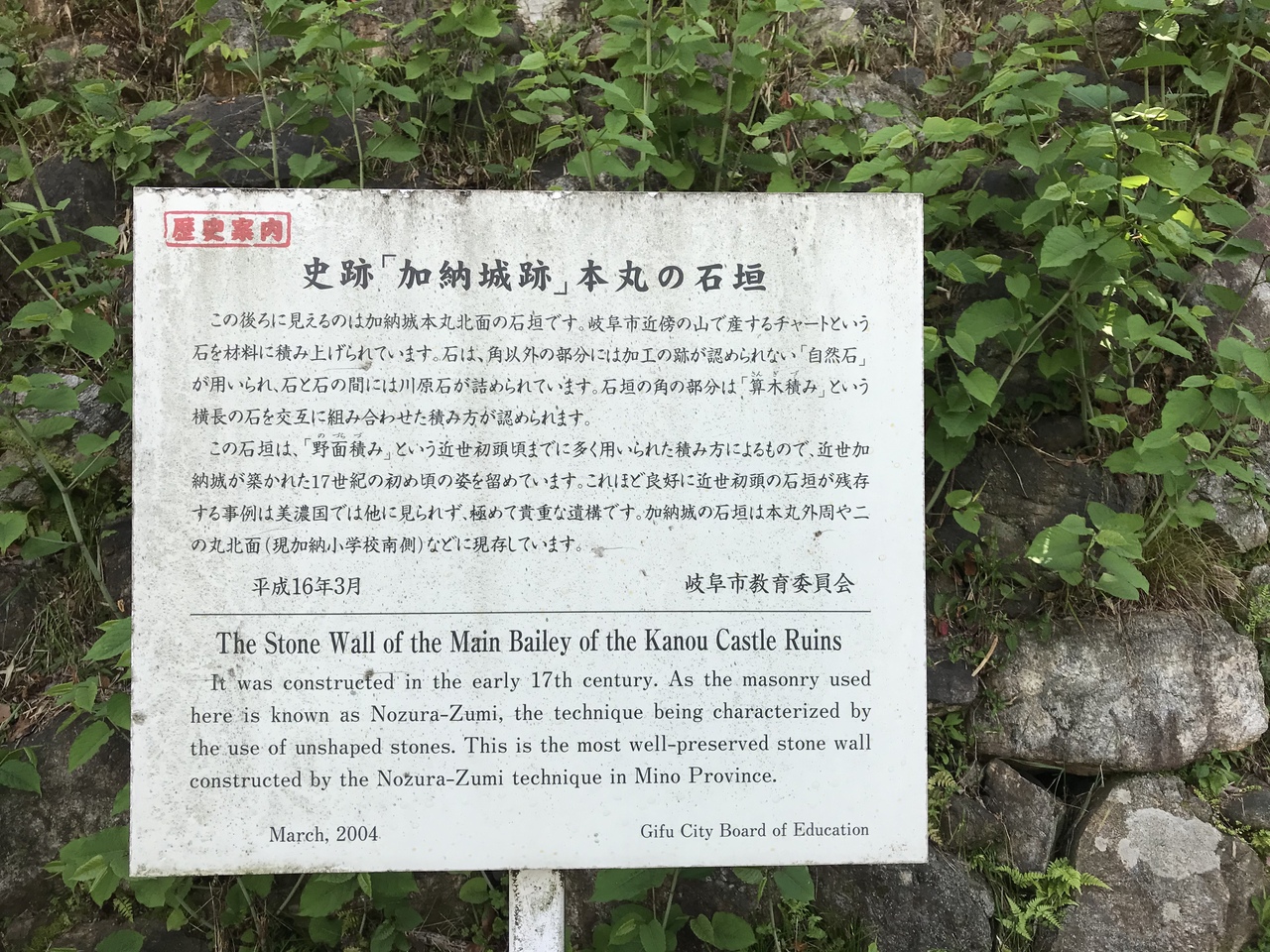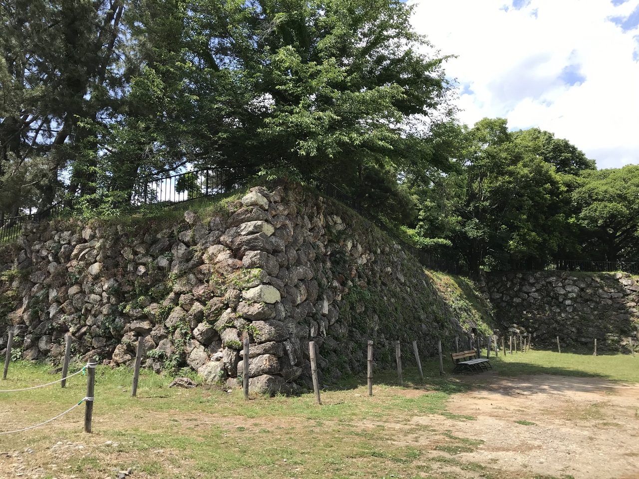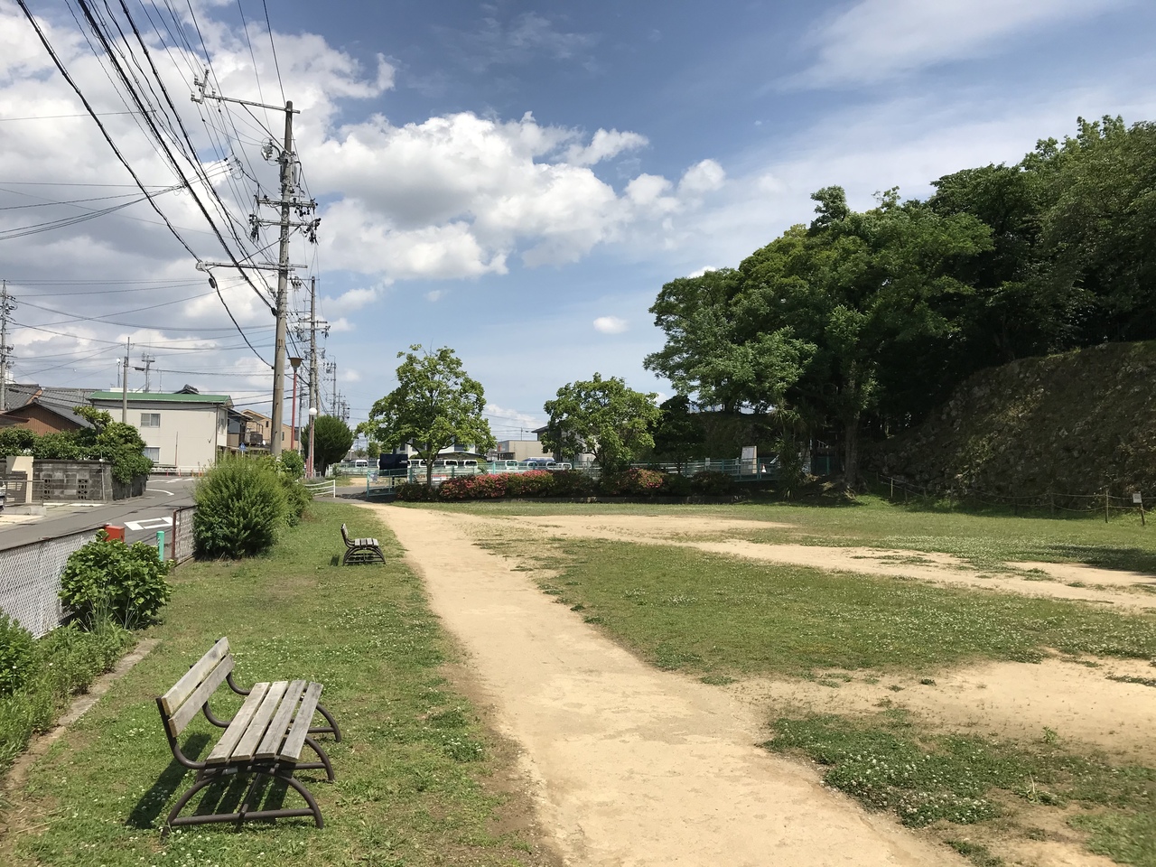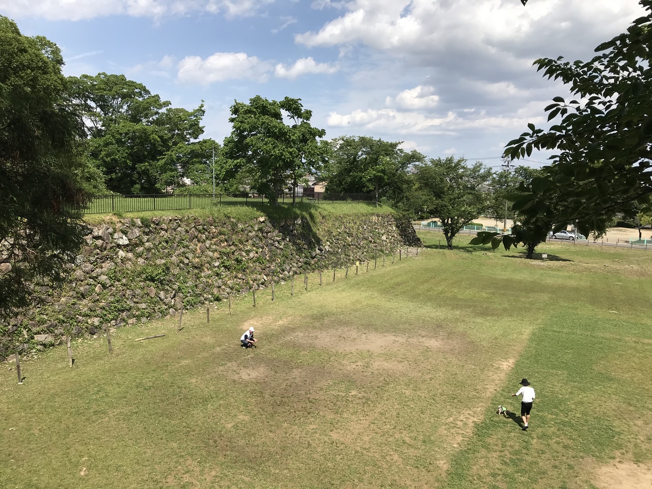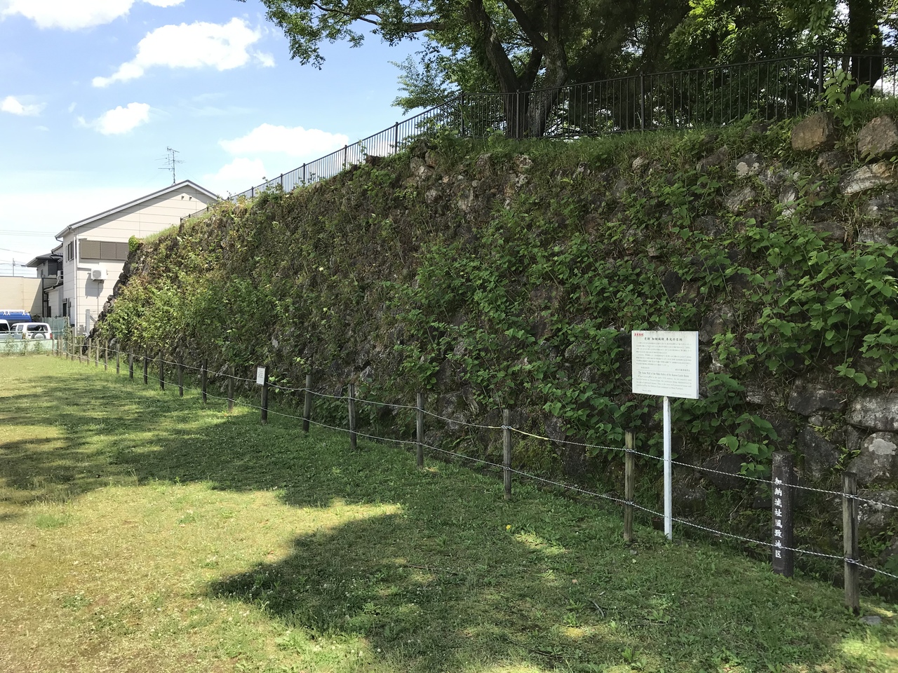 岐阜県の城跡巡り:加納城跡、住宅街の中に本丸跡・堀跡・石垣が残る