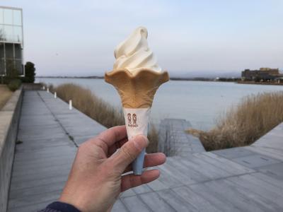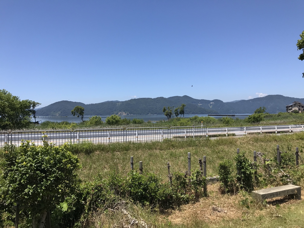 目の前には琵琶湖を望み、日本の夕陽百選に選る、風景の綺麗な気持ちの良い場所であった。