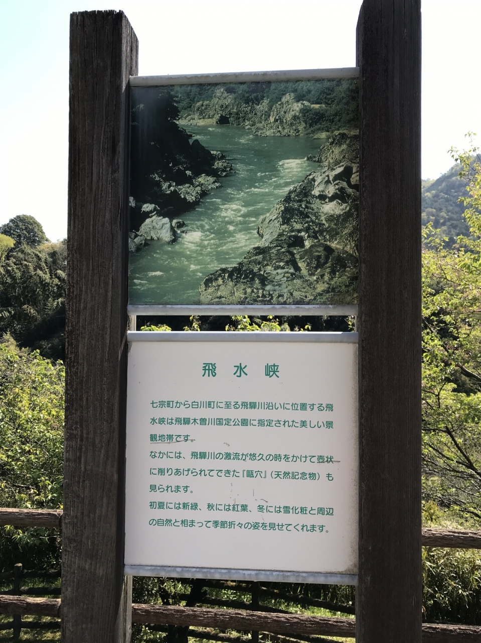 道の駅の建物脇の川沿いは、ふれあいの里公園があり、飛水峡の景観美の一部を見ることができる。ドライブの気分転換するには良い場所にある道の駅だ。- 旅行時期