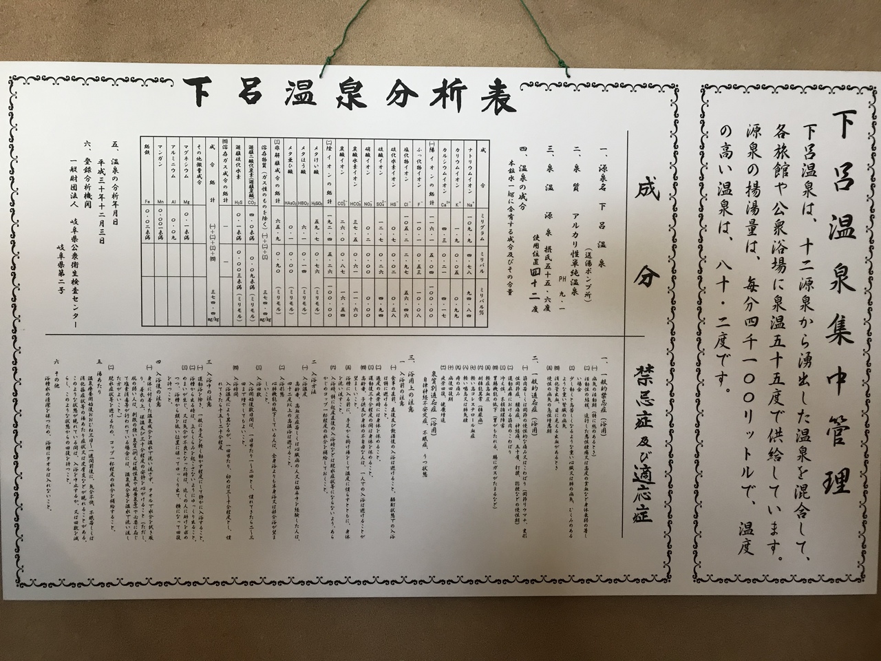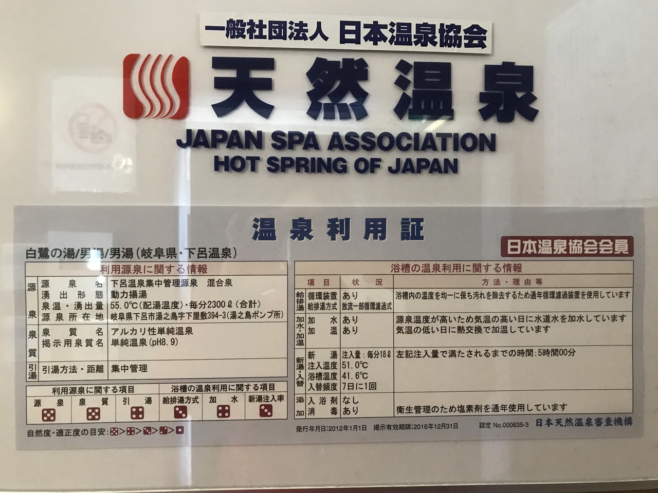 有馬・草津と並ぶ三名泉の下呂温泉の特徴は、各々の源泉を一箇所に集めて各施設に温泉を供給する源泉集中管理システム。つまり、何処の施設でも同じ湯である。- 旅行時期