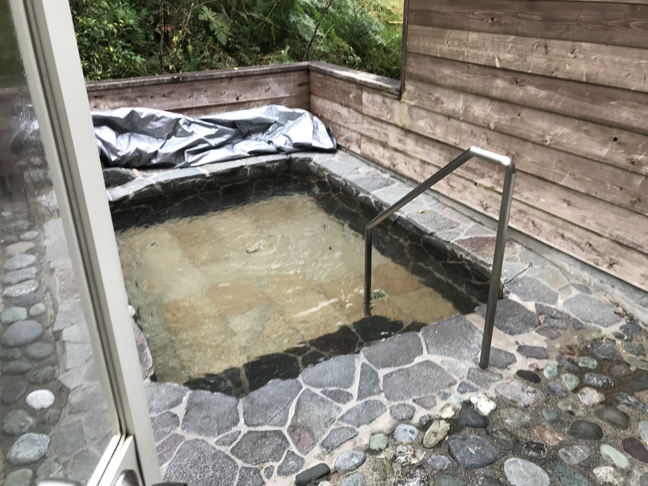 源泉掛け流しの湯は、鉄分が含まれるため少し茶色がかり、少しヌメリのある温泉だった。