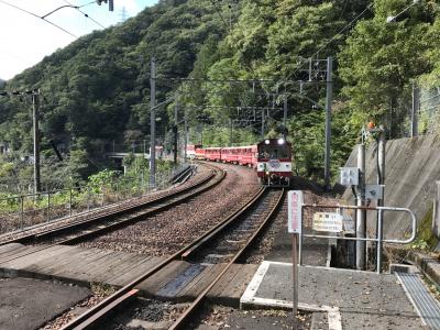 SLが通過時は、露天風呂に浸っていると外部との目隠しの壁が邪魔するため、立ち上がらないと全体像が見えない。- 旅行時期