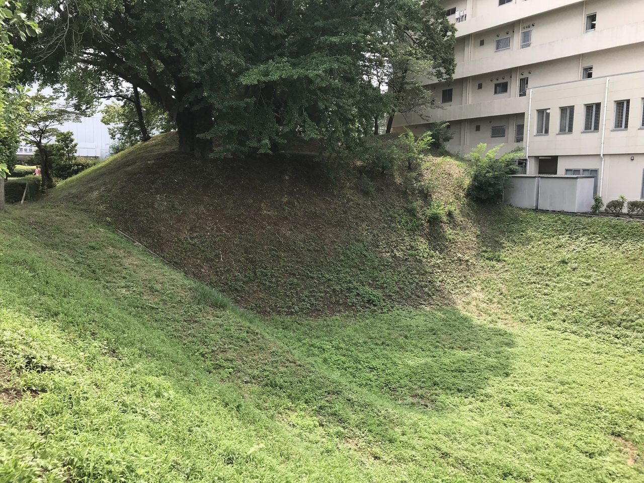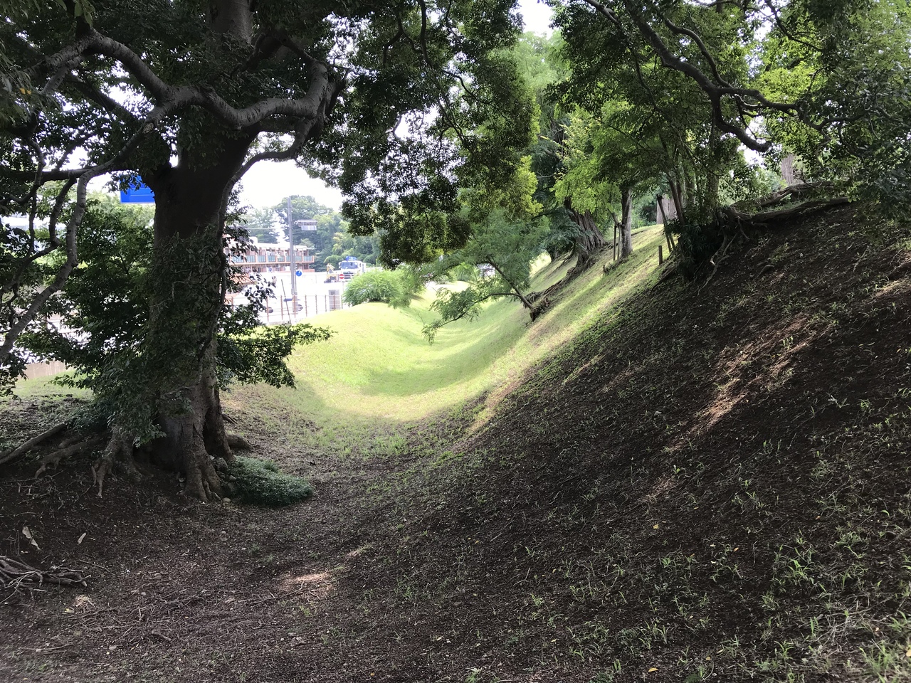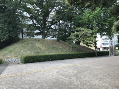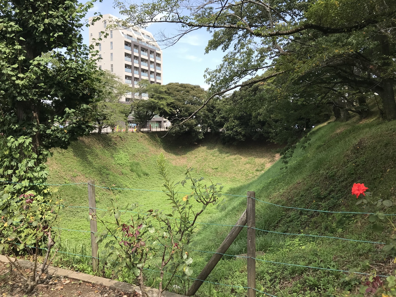 水戸城の三の丸跡にある旧茨城県庁(三の丸庁舎)には、水戸城跡の堀跡や土塁跡の遺構が見事に残り城内であることが明確にわかる。
