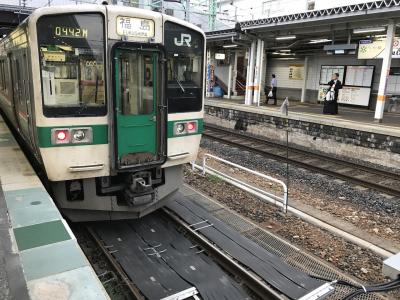 この路線は気動車だった。始発の郡山駅では、通勤通学のラッシュ時らしく2両編成の列車は満員であった。- 旅行時期
