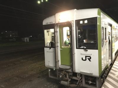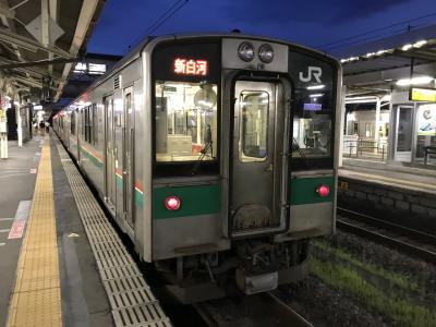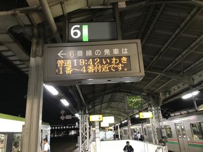 磐越東線は別名「ゆうゆうあぶくまライン」と呼ばれ、おそらく阿武隈川に沿って走っていると思うが、19:42発のいわき行きは最終電車にあたる列車に乗車したので、暗闇の中風景は全く望めなかった。