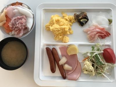 提供量に限りがあるが、朝から海鮮丼が食べ放題。限定の海鮮丼を食べるために6:30の朝食開始時間に食堂へ行く。たっぷりの海鮮を取る。刺身としてお代わりもする。
