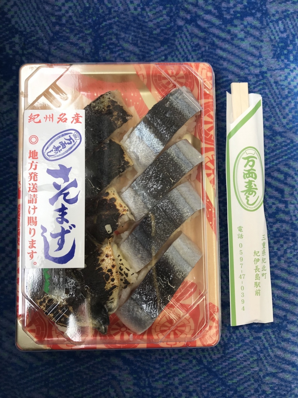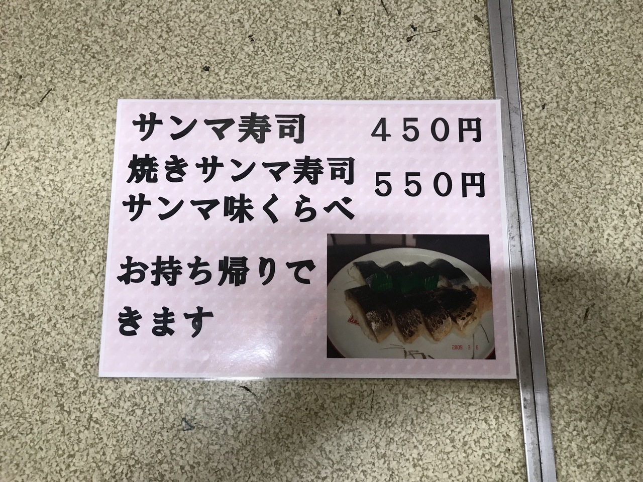 サンマ寿司と焼きサンマ寿司のサンマ味くらべのセットを購入。価格は550円也。