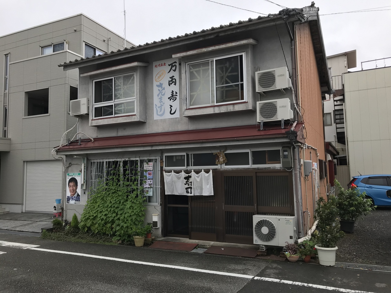 紀伊長島駅を出ると、すぐに「万両寿し」の看板が目に入る。