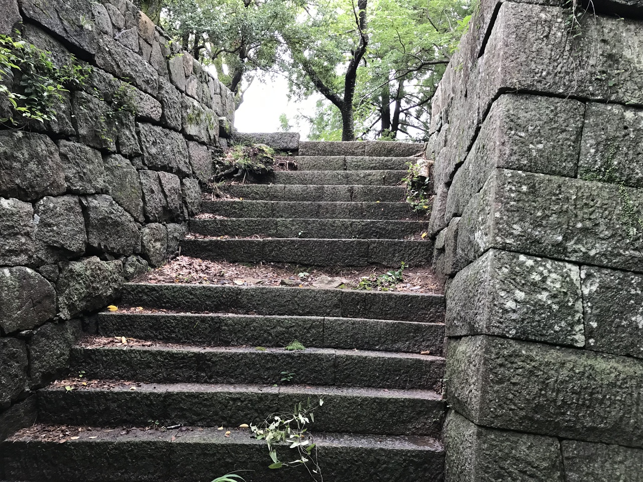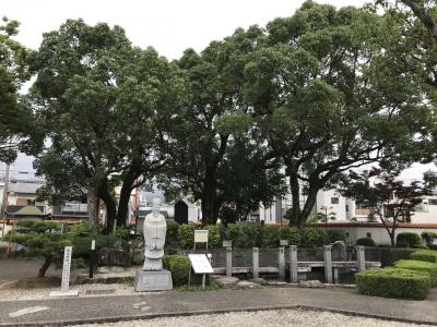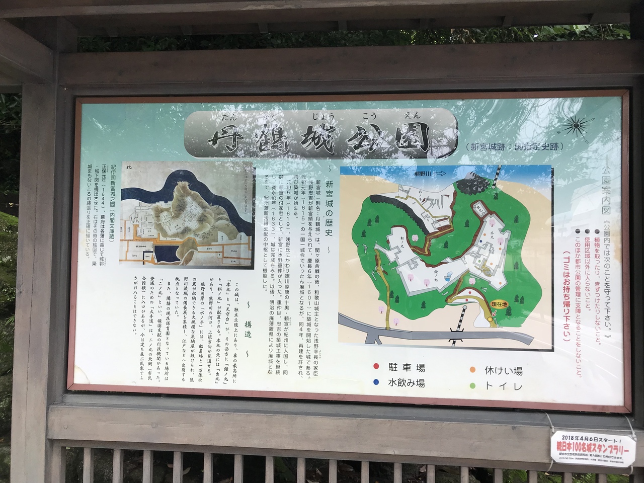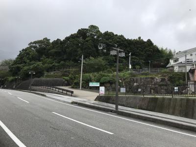 新宮駅を出ると熊野川方向に丘陵が見える。丘陵が丹鶴城公園として整備されている新宮城跡で、駅から徒歩10分程だった。